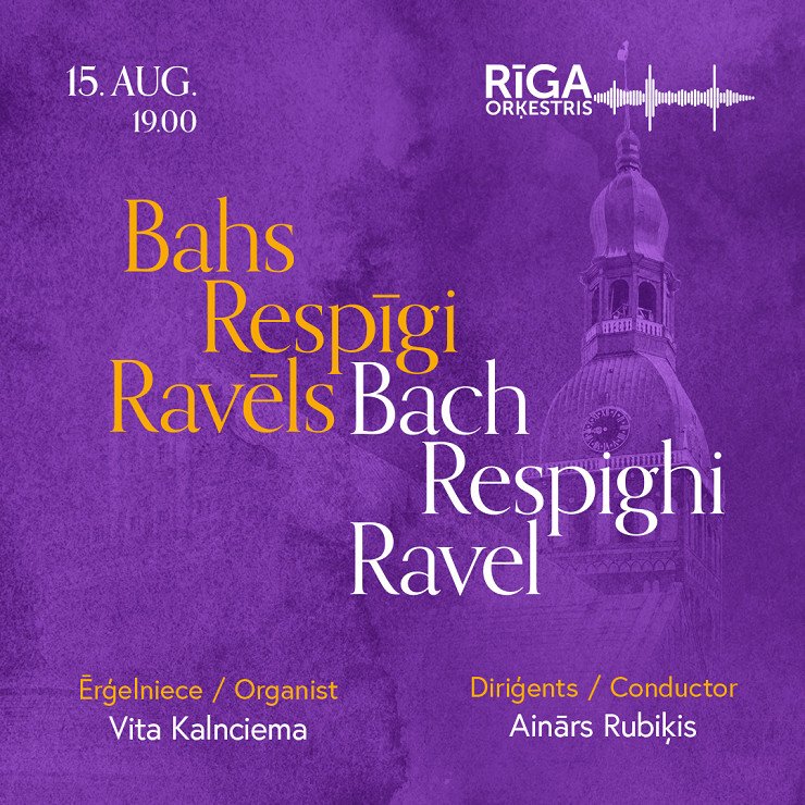 In the BACH RESPIGHI RAVEL concert, organist Vita Kalnciema and the internationally recognized Latvian conductor Ainārs Rubiķis have been invited to cooperate with Orchestra RIGA. The performance of Otorino Respighi's opus "Cathedral Windows" is special - with a rare instrumental interplay between a brass band and an organist. The program also includes Respighi organ preludes, music by Bach and Ravel.